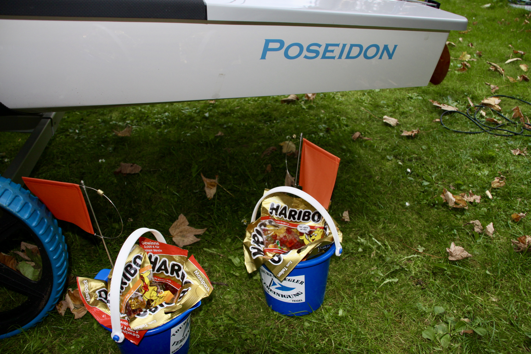 Nach der kurzen Rede von dem Jugendleiter Maurice schenkte Axel jedem Schiff einen kleinen Present-Eimer mit einem sehr nützlichen Verklicker und Gummibärchen.