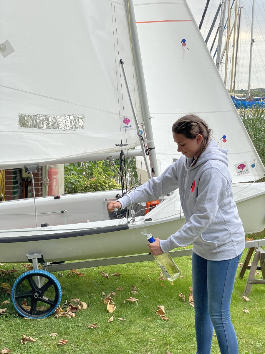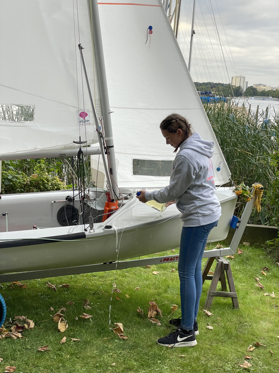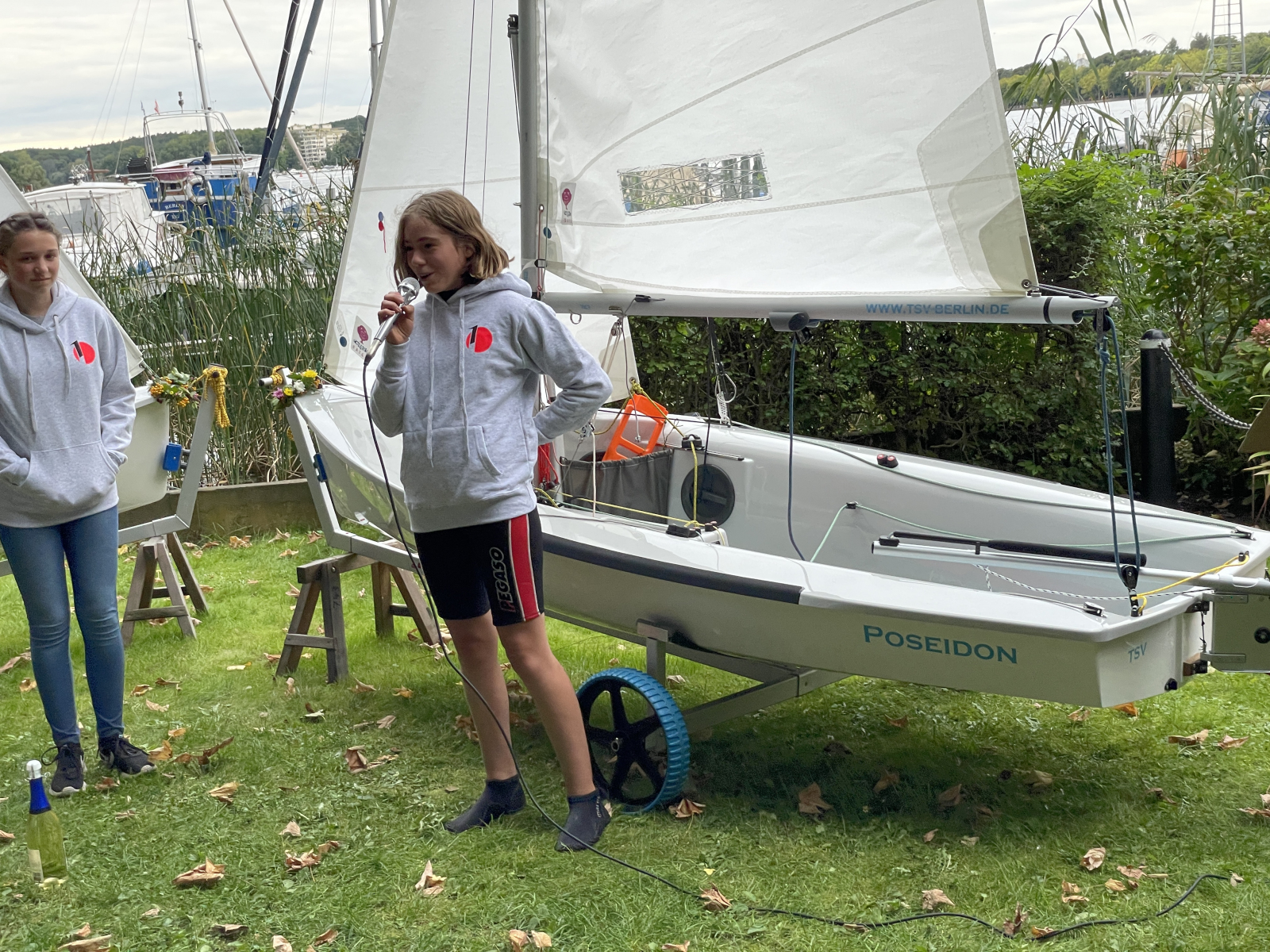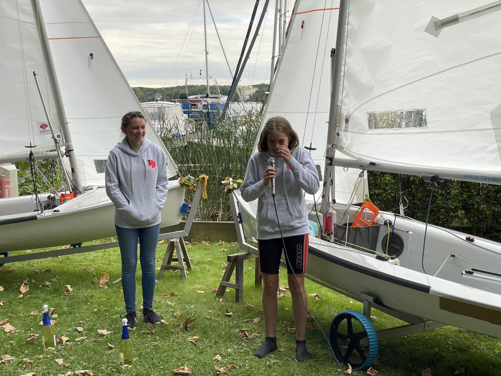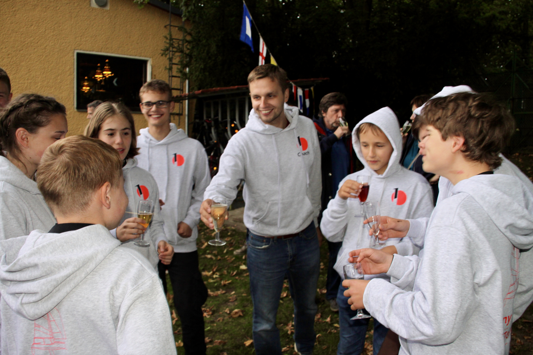 Die Segler haben sich dafür feierlich in ihre neuen Team-Hoodies gekleidet.