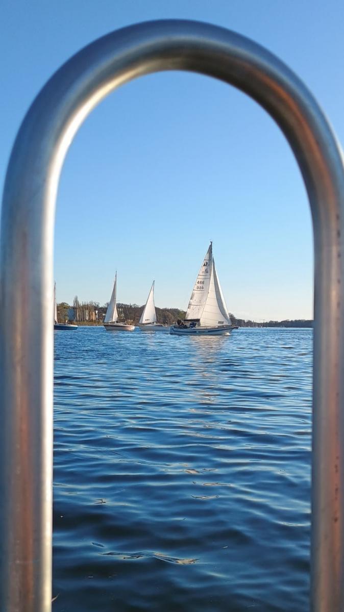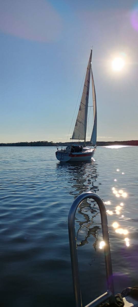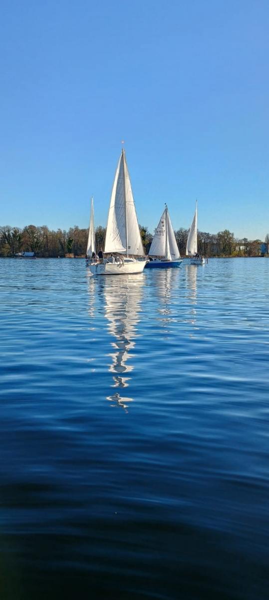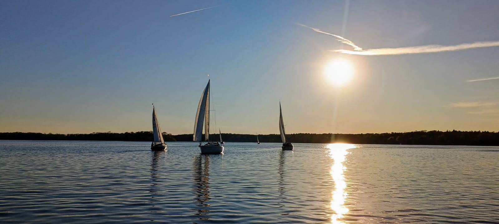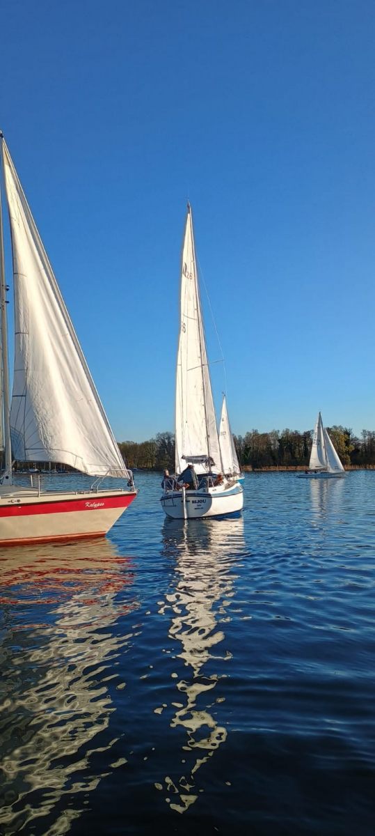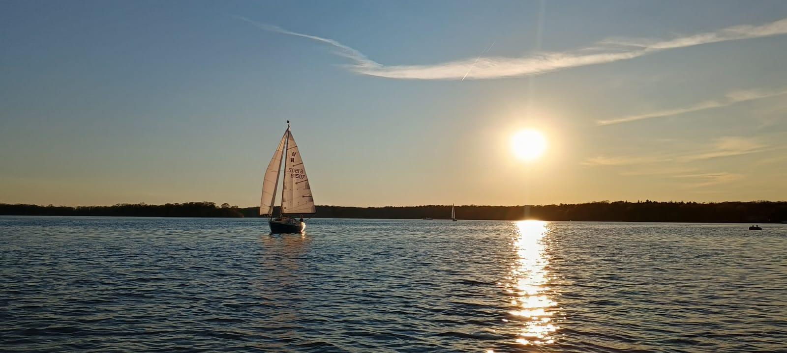 Kaum ist der Winter vorbei, da fand schon vor dem offiziellen Ansegeln unsere erste vereinsinterne Wettfahrt statt. Mit fünf Booten sind wir am 4. April bei angenehmen Temperaturen, strahlendem Sonnenschein und relativ konstantem Wind zwischen einer und zwei Beaufort auf den See hinausgefahren. Um 17.30 sollte der Start sein – eigentlich, denn offenbar hatten nicht nur die Segler, sondern auch der Wind seine Uhr synchronisiert und pünktlich zum Start zeigte der Windmesser 0 kts Wind an. Nach einer kurzen Startverschiebung von zwei Minuten konnten wir den zweiten Anlauf erfolgreich nutzen – und dieses Mal tatsächlich starten.