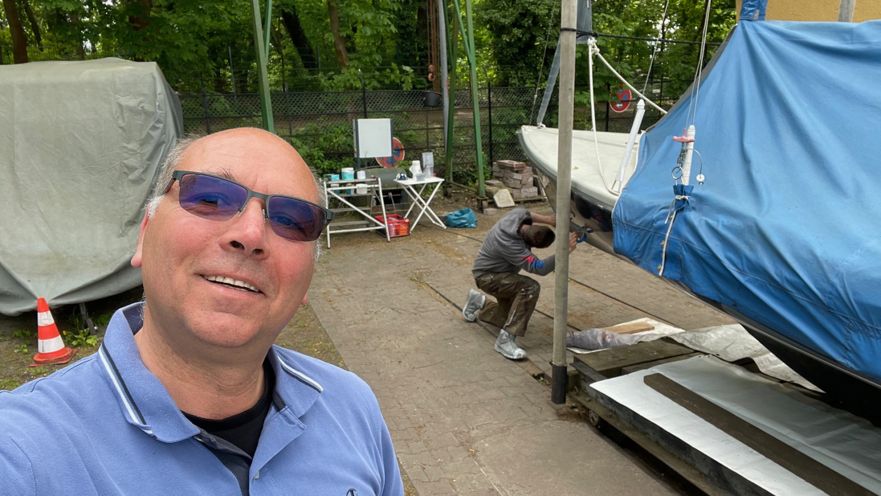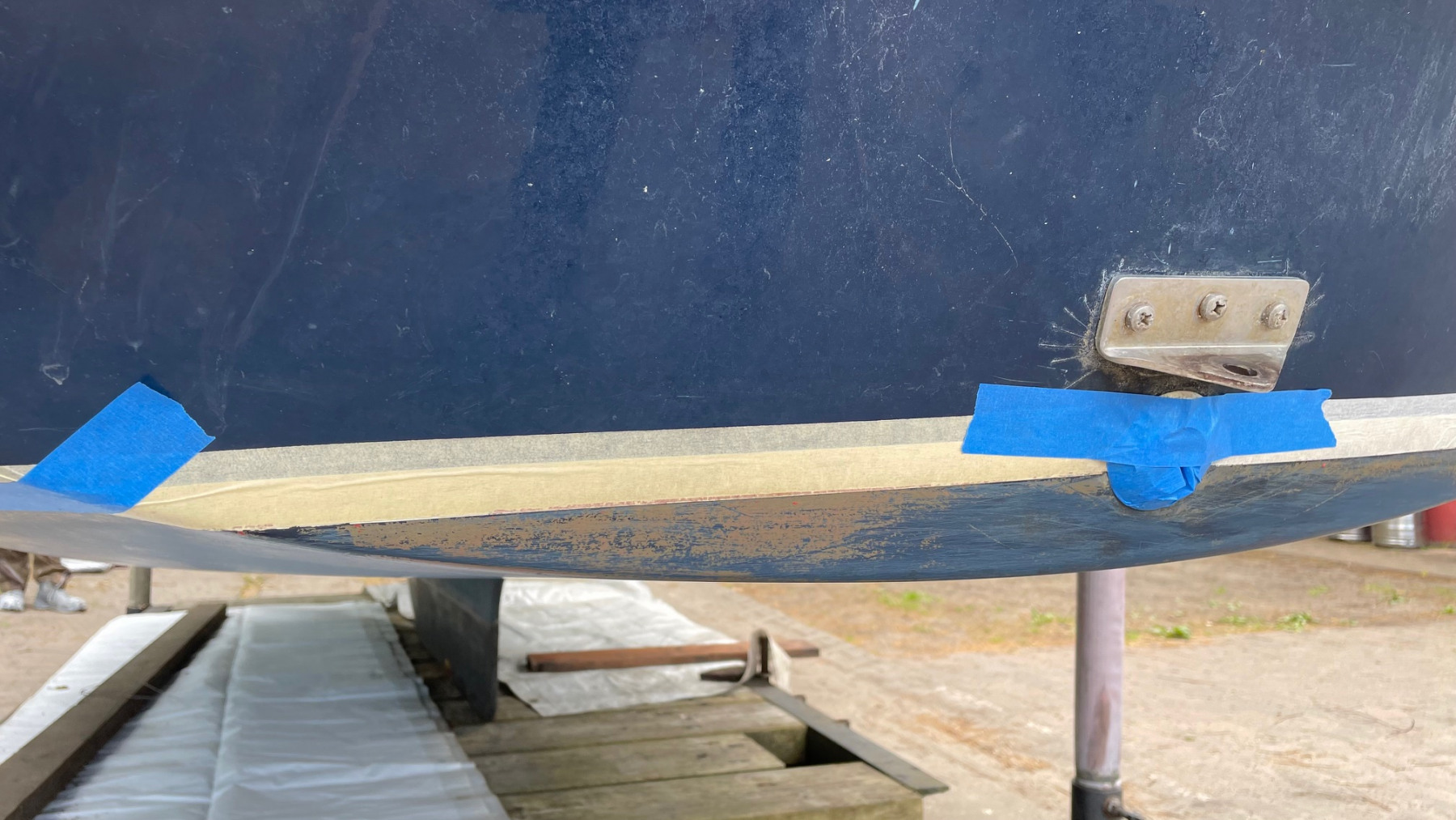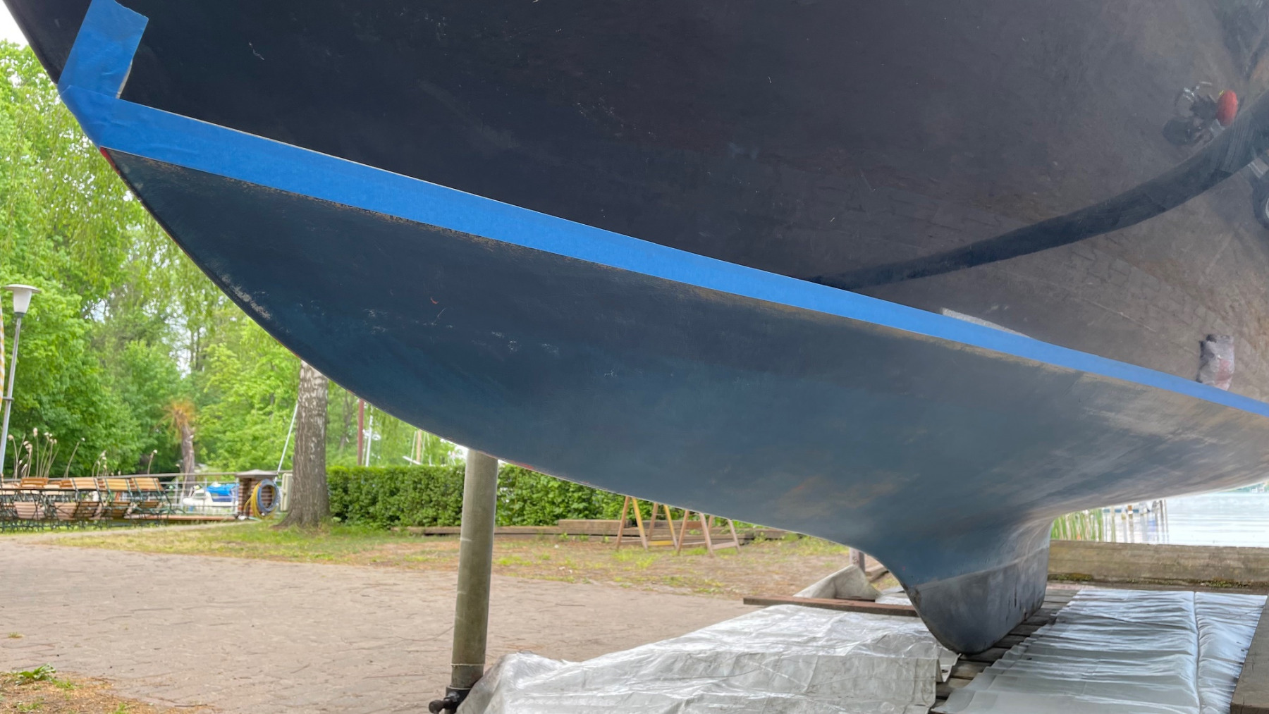 • 15.-16.05.2023 Praktische Umsetzung der Beschichtung der Randmeerjolle „Gute Miene“ mit B-Free von International, ebenfalls Biozidfrei. Die Farbaufträge bestanden aus B-Free Tiecoat, anschließend B-Free Conversioncoat, je einmal und aus B-Free Explore 2malig. Die Vorarbeiten beliefen sich auch hier auf abwaschen mit einen Schleifvlies, da sich das Unterwasserschiff in einem guten Zustand befand. Die Farbaufträge wurden von einem Mitarbeiter von International betreut.