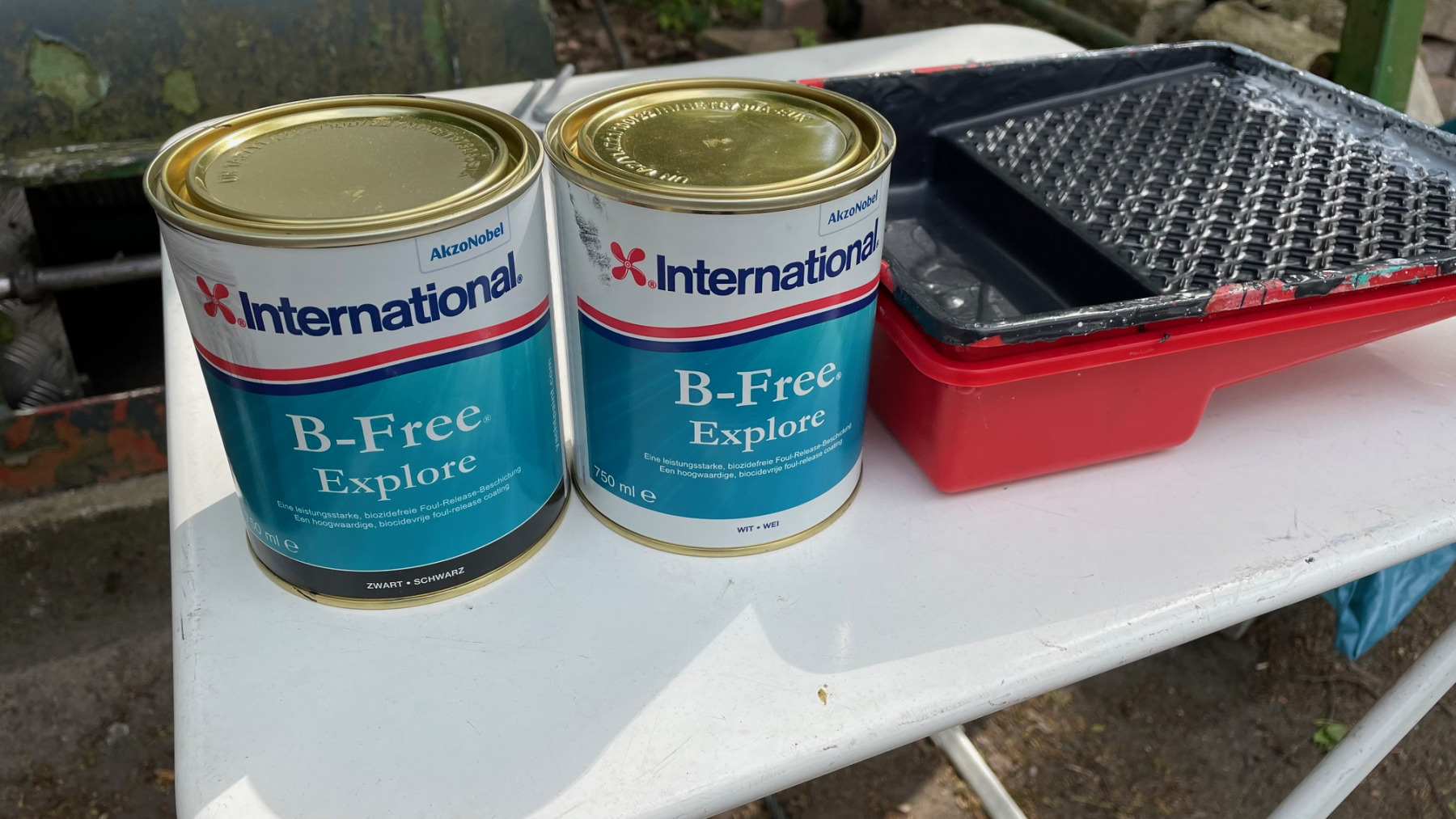 • Fa. International hat sich bereit erklärt, uns das Material für eine Beschichtung mit „B Free Explore“ zu stellen und damit ein erfolgreiches Ergebnis erzielt wird bei der Erstbeschichtung vor Ort zu sein. Um eine gute Vergleichbarkeit zu gewährleisten bekommt die andere Raandmeerjolle diesen Anstrich.