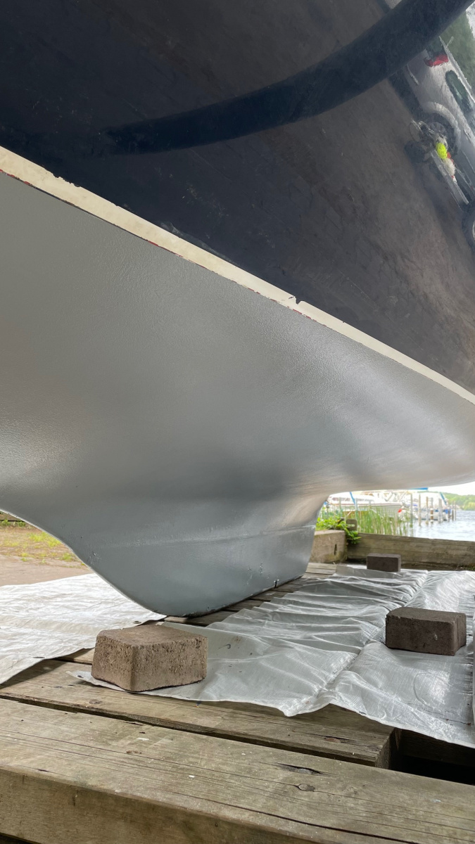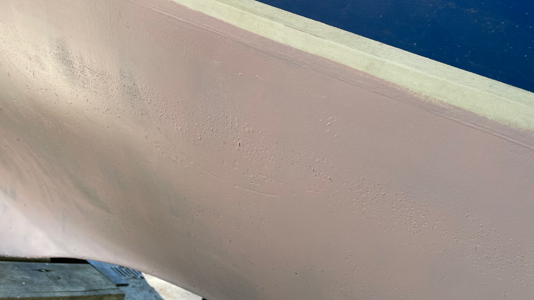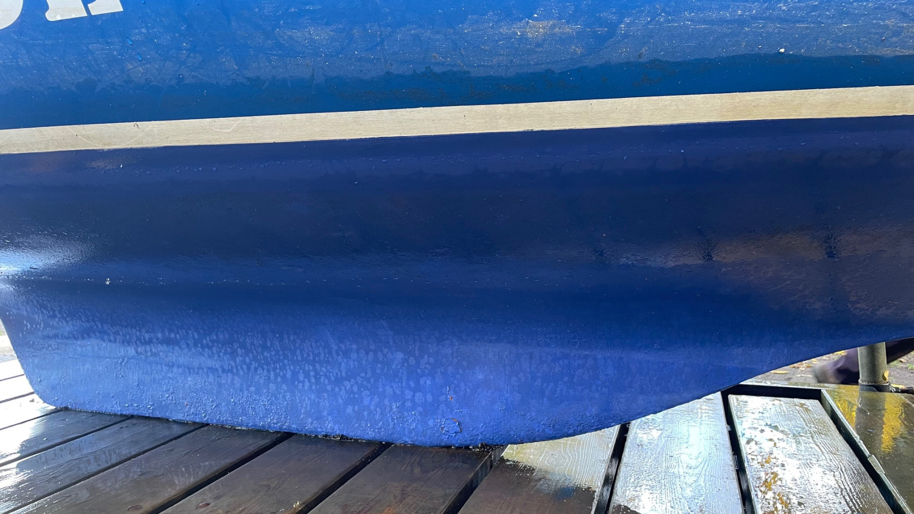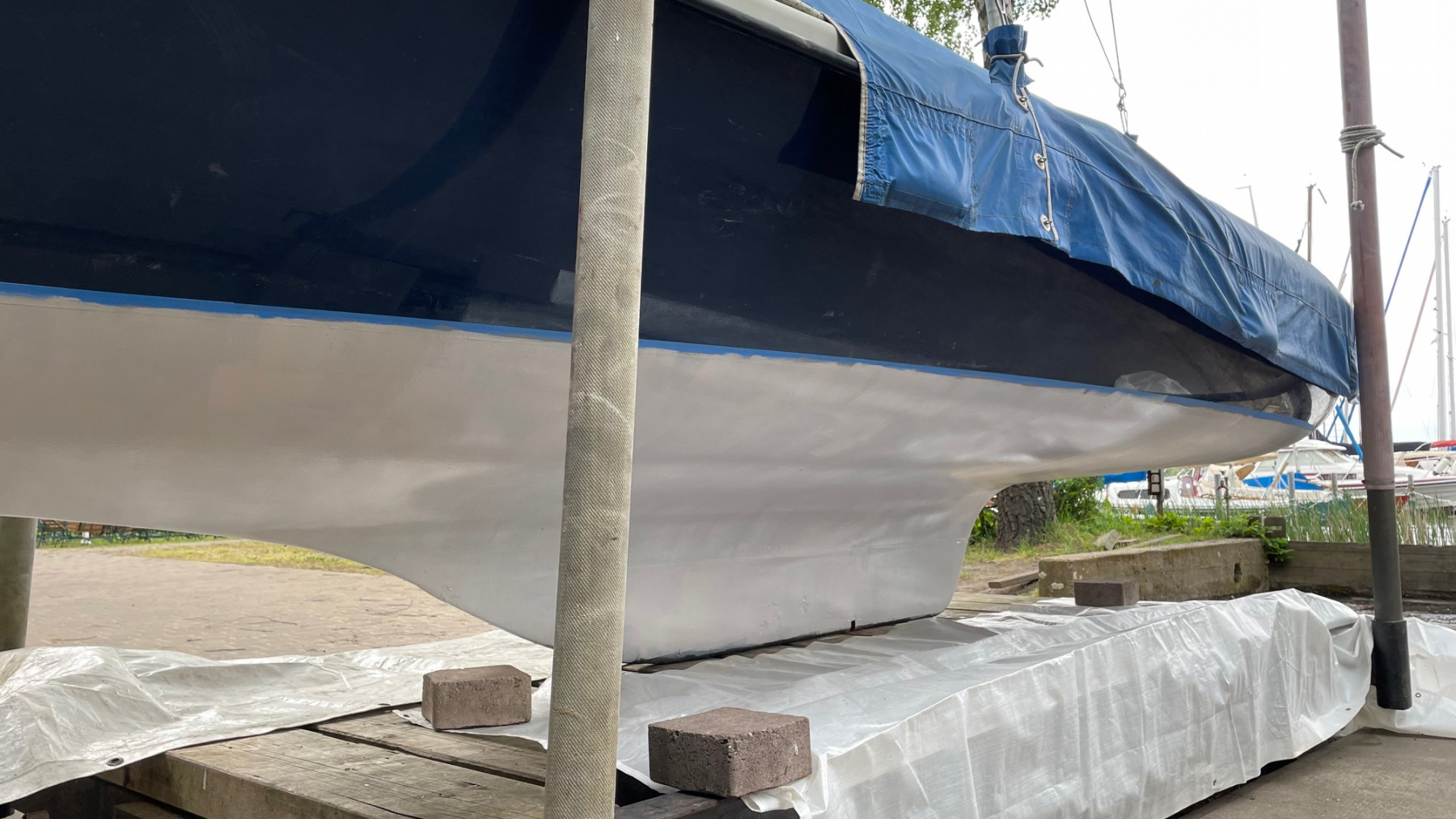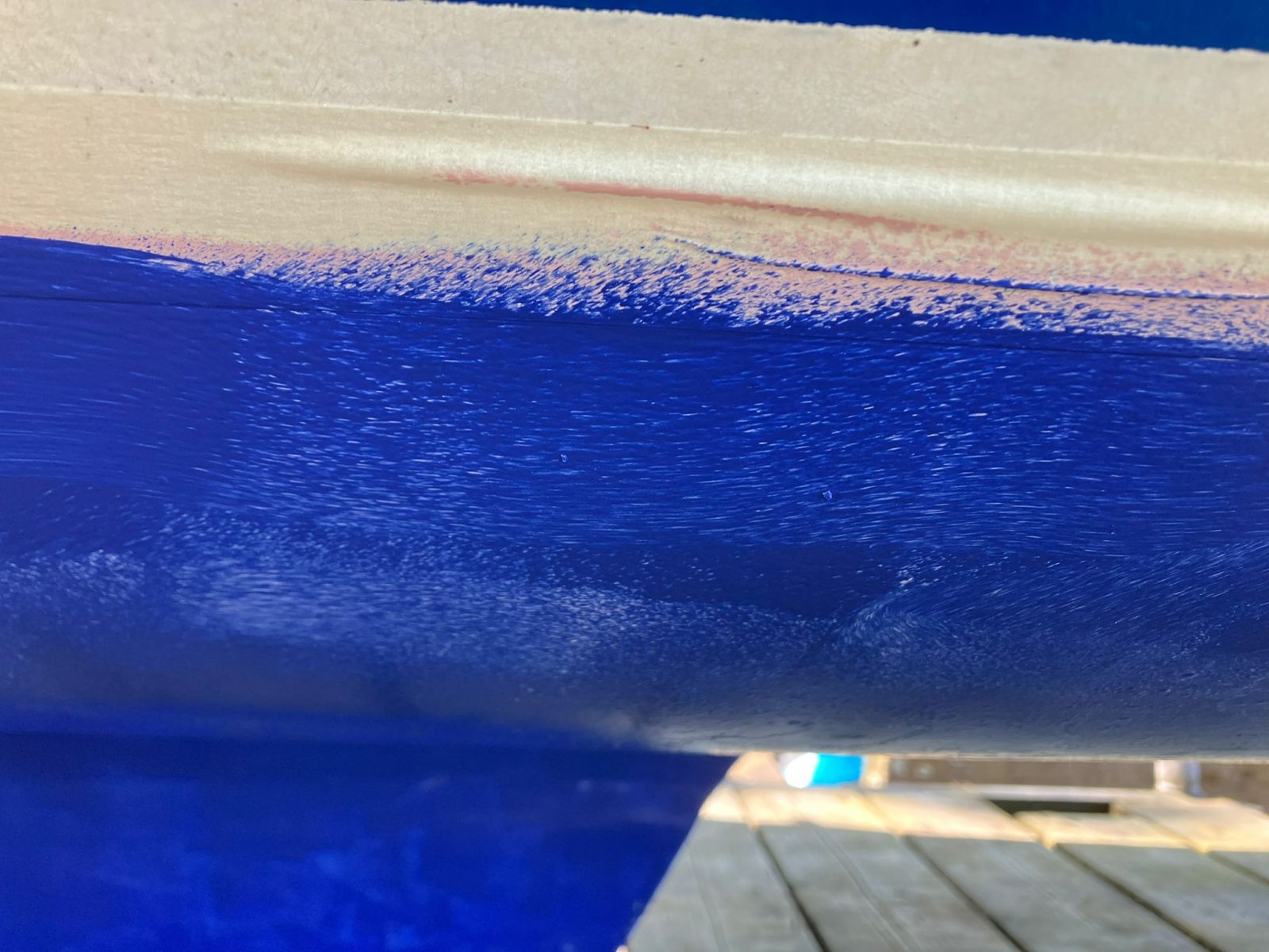 • Das „Probierpaket Hempaspeed TF“, bestehend aus 2K Conversion Primer und Hempaspeed TF, wurde nach abwaschen des Rumpfes mit einem Schleifvlies innerhalb von 2Tagen aufgebracht. Die Materialmenge war eigentlich zu wenig für ein ganzes Boot, die Schichtstärke konnte nicht erreicht werden. Bis zum Slip-Vorbereitungs-AD am 04.11.2023 wurde das Unterwasserschiff nicht mehr betrachtet.