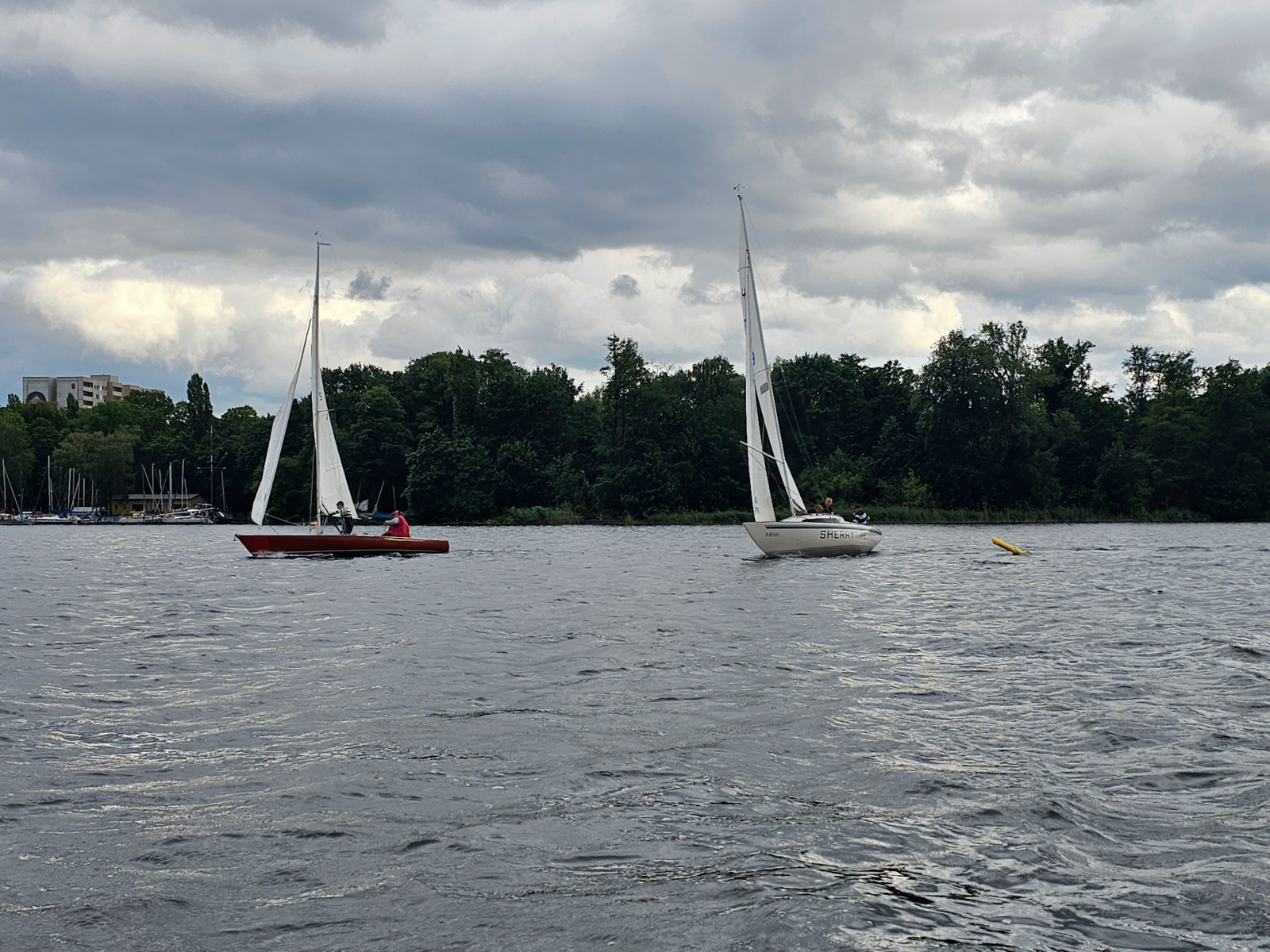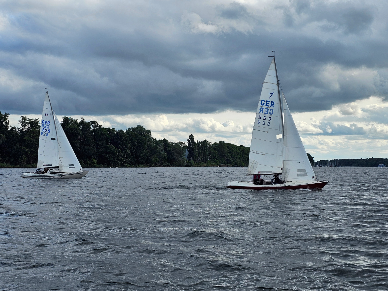 Am 27. Juni fand unsere dritte, vereinsinterne Wettfahrt statt. Trotz des warmen Wetters waren wohl einige Segler durch die in der Woche vorangegangenen, kurzen aber heftigen Gewitterstürme so verschreckt worden, dass sich nur 4 Boote an den Start getraut haben. Angesagt war Bft 3-4 aus NW, es fühlte sich anfangs mehr an und am Ende weniger…