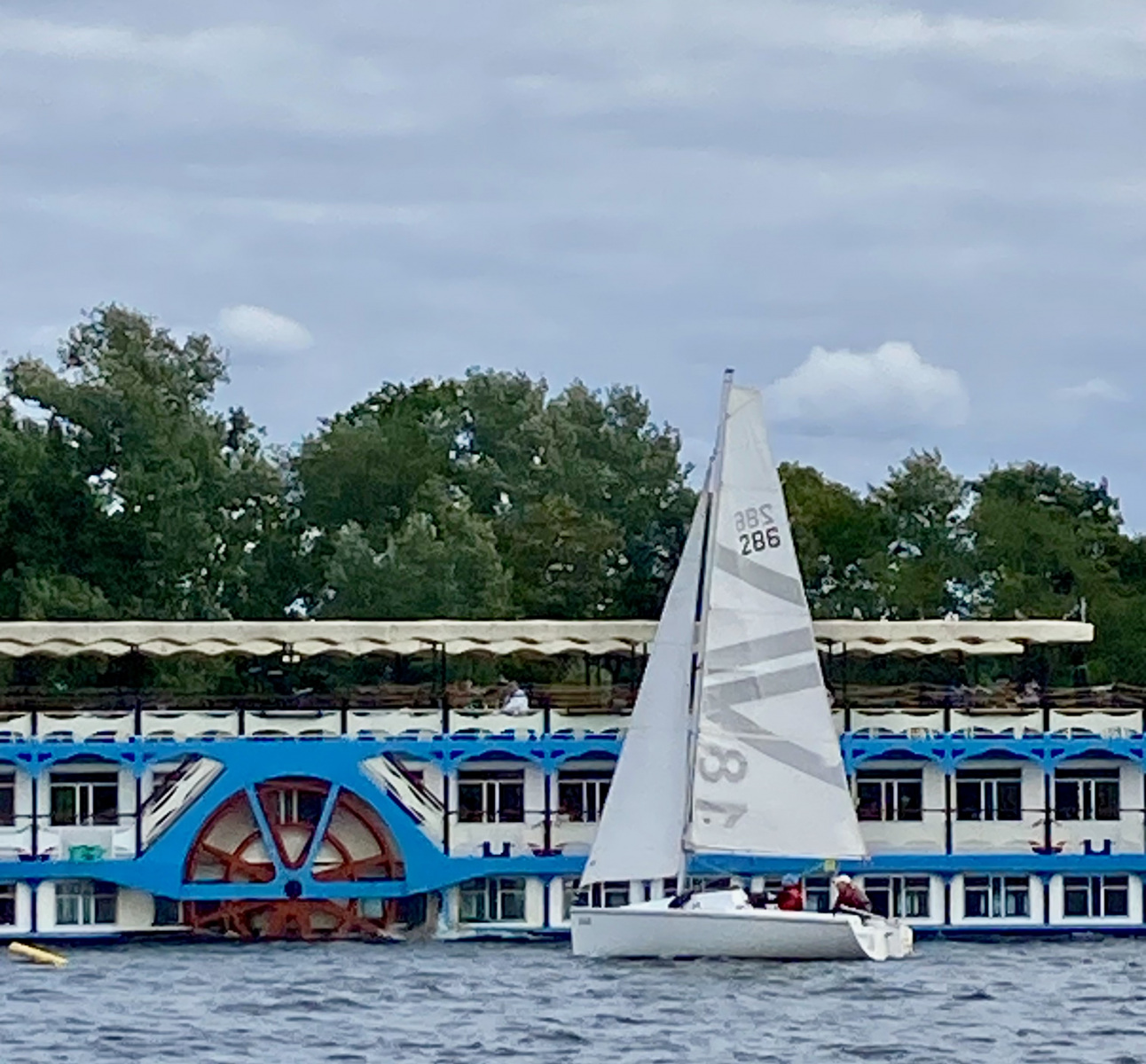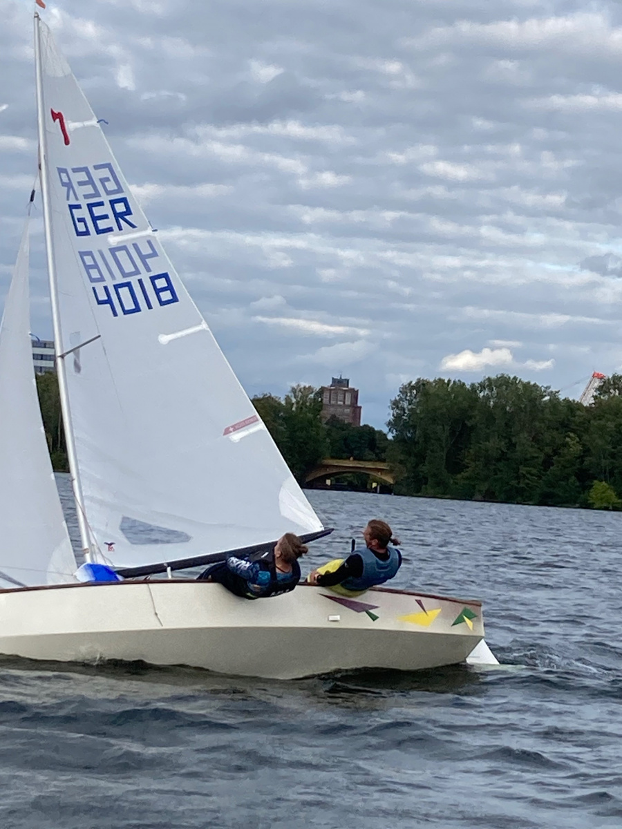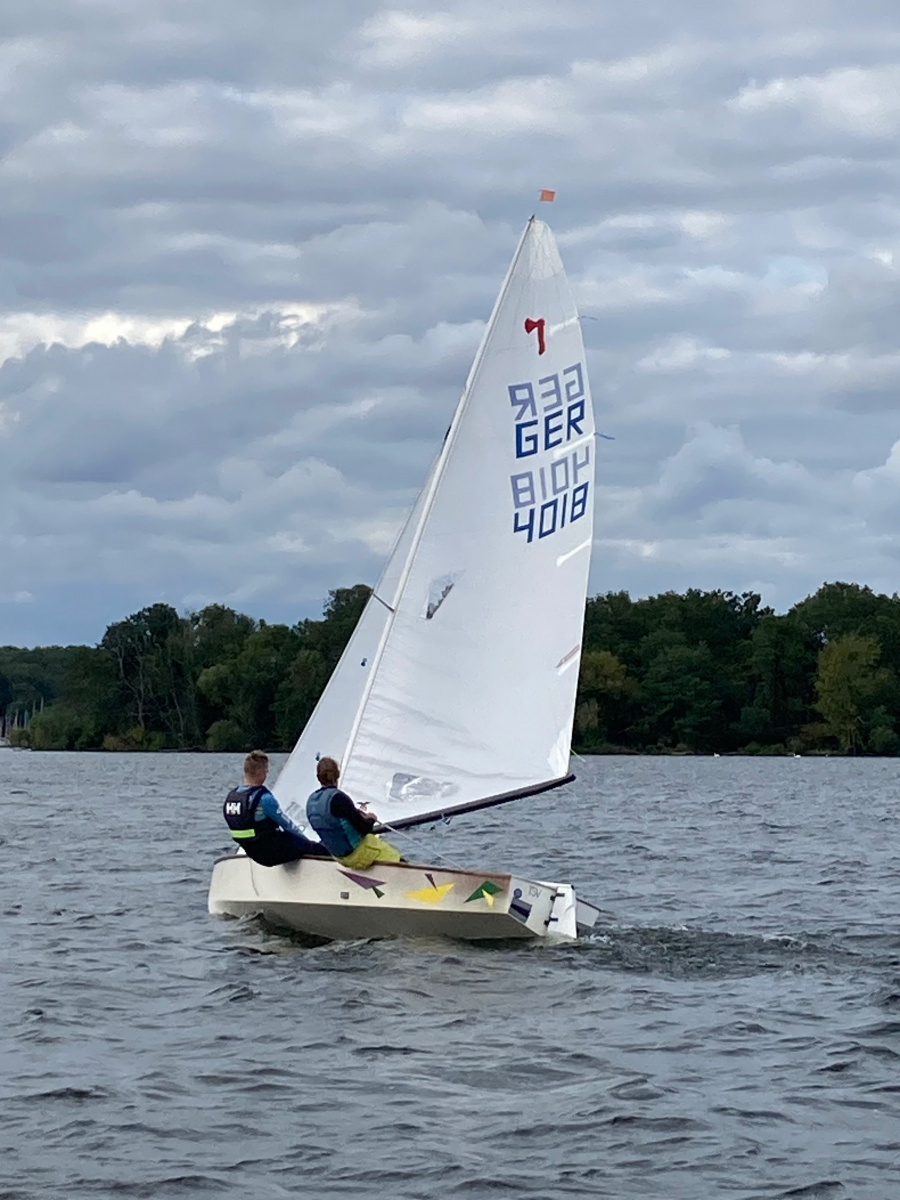 Das Wetter zeigt Wolken, der See ist etwas rau. Die 6. Vereinsinterne startet. Schöner Kurs, dreimal hoch zur Bezirkstonne am Strandbad und dreimal zurück – Up and Down Kurs. Der Wind weht aus West, so hin eine Kreuz und zurück kam es achterlich und das Gefühl der Wind schläft ein. Gerald mit seiner O-Jolle hatte Probleme mit dem Segel und zog wieder in den Hafen zurück. Leider.